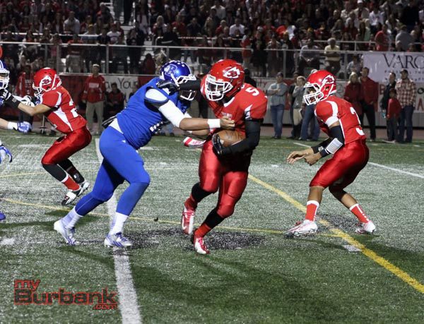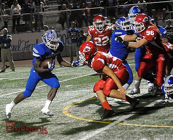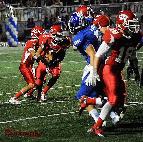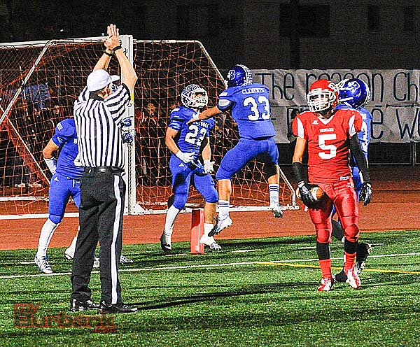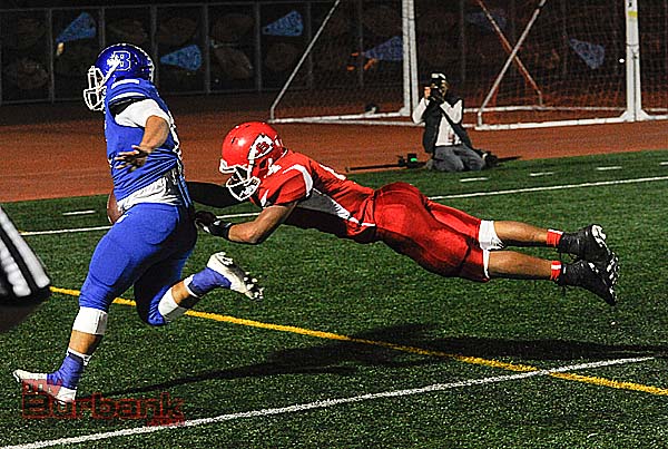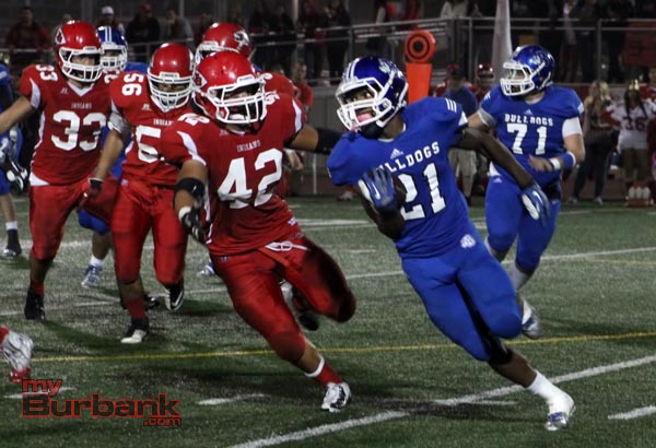 Brown, who transferred from Burroughs to Burbank this past summer, then intercepted a Williams’ pass with 2:21 left until halftime and returned it 24 yards down to the Indian 11-yard line.