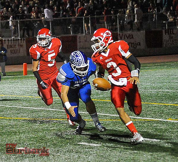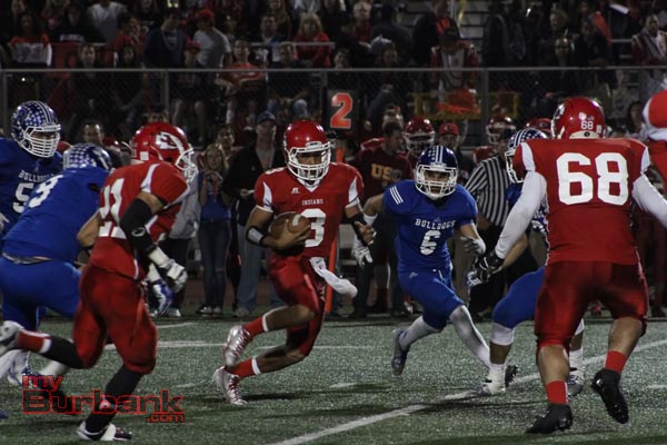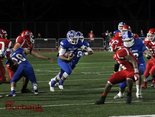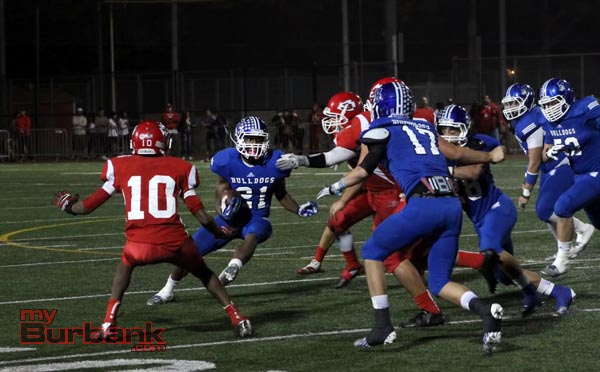After forcing Burroughs to punt, Pendleton exploded out of the backfield and down the Burbank sideline on a 62-yard gallop that gave the Bulldogs a 31-14 lead with 6:53 remaining in the quarter.