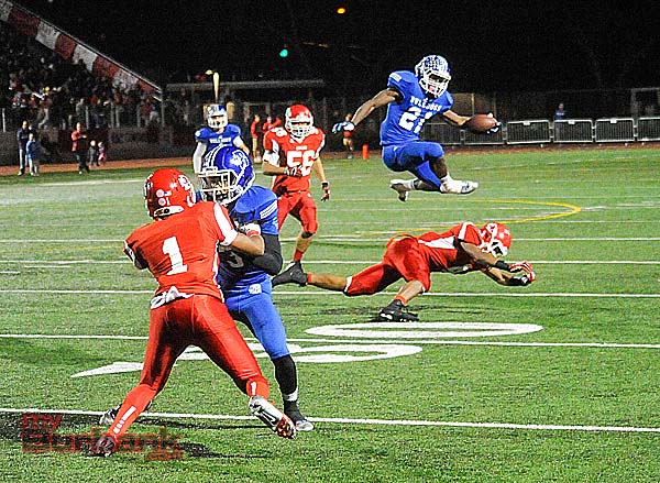 Leading 17-14 at the half, Burbank turned to Williams to make things happen. On the Bulldogs’ first possession of the second half, Williams scored on an incredible 38-yard run where he leaped over one Burroughs player and sidestepped several others en route to the end zone.