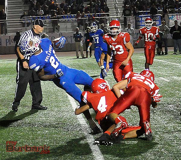 In lower level action, Burbank completed the trifecta with wins over the Burroughs Junior Varsity, 24-0, and on the freshman level, 33-0. The Bulldogs won the Pacific League on both the JV and freshman levels.