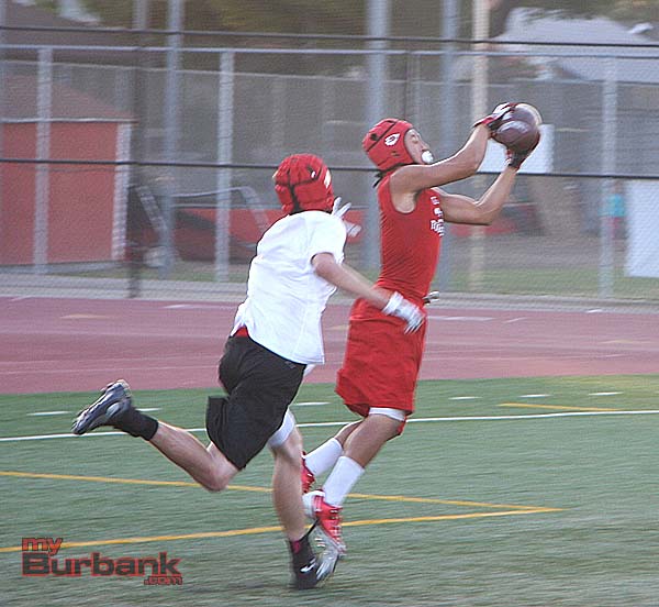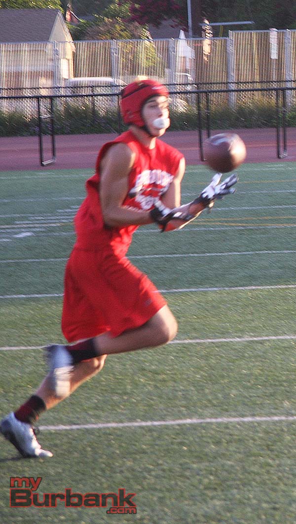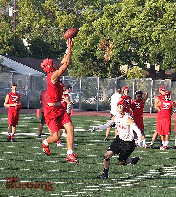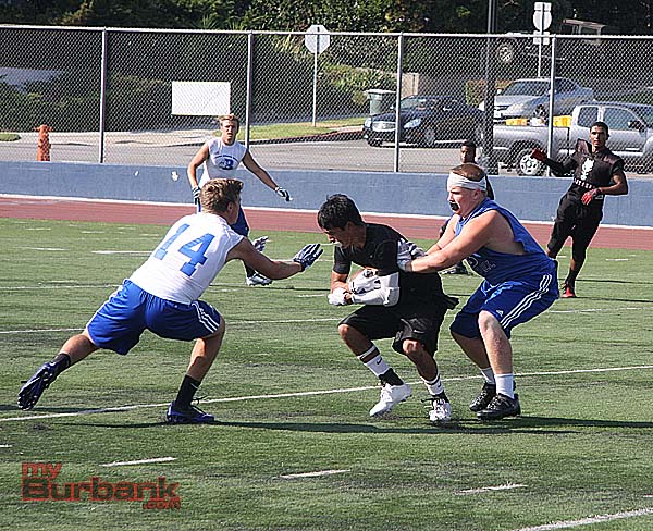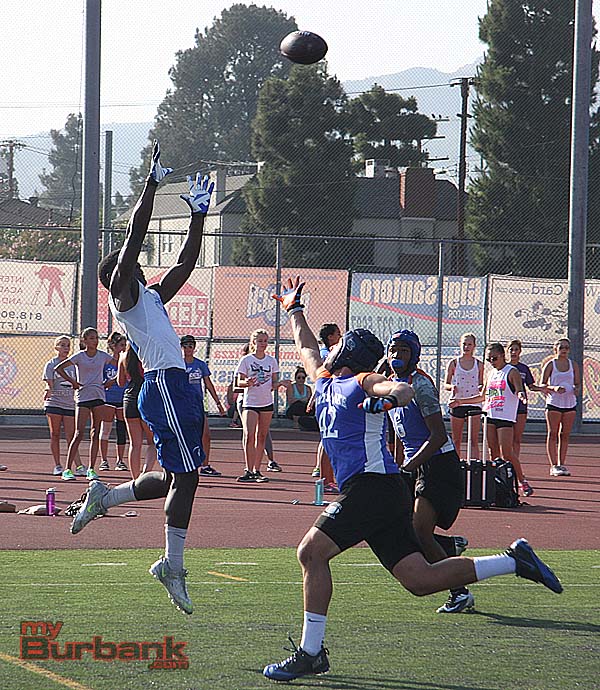 Last Wednesday, Burbank hosted Westlake, San Fernando and Arleta while across town Burroughs welcomed Alemany, Village Christian and Vasquez in separate 4-way round robins of 7-on-7 passing. A photo gallery is below highlighting each team.