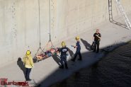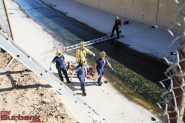 The rescue required Firefighters to descend into the wash and then use ropes and a stokes basket that was lifted by a fire truck with specialized equipment.