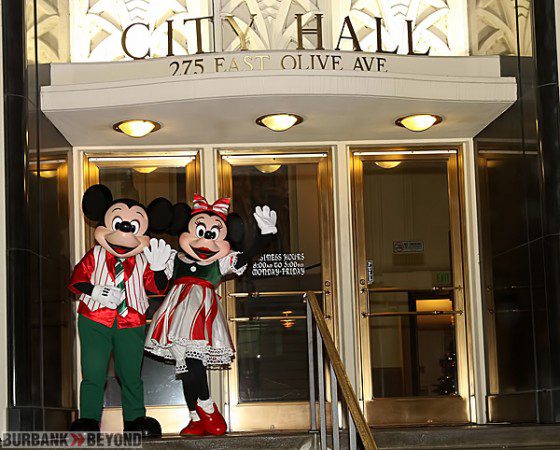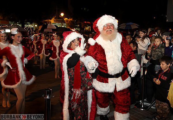 Hundreds braved the light rain and came out to help Burbank Mayor David Golonski, Mickey & Minnie Mouse and Santa and Mrs. Claus in this years tree lighting ceremonies.