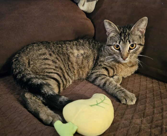 Frida always wants to be where the action is and follows her foster mom from room to room. While she has a lot of kitten energy, she really snuggles up to her foster mom on the couch in the evenings. “It’s so sweet. She doesn’t like it when I get up to do something and waits for me to get back so she can resume her snuggling.” When she’s in the mood, she loves head scratches which turns her into a purring machine.