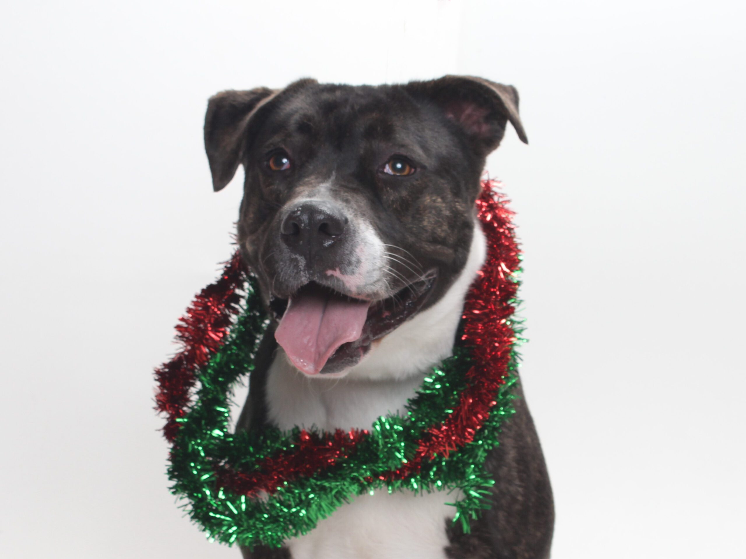 Meet Lola, a female black, brindle, and white Labrador Retriever and Pit Bull Terrier mix at the Burbank Animal Shelter. Lola is a friendly, sweet girl, very affectionate, excited to be around people, and very smart. At some point in her life, someone cared for her and loved her, and the shelter just want her to have a second chance at happiness and back in a home where she is loved.
