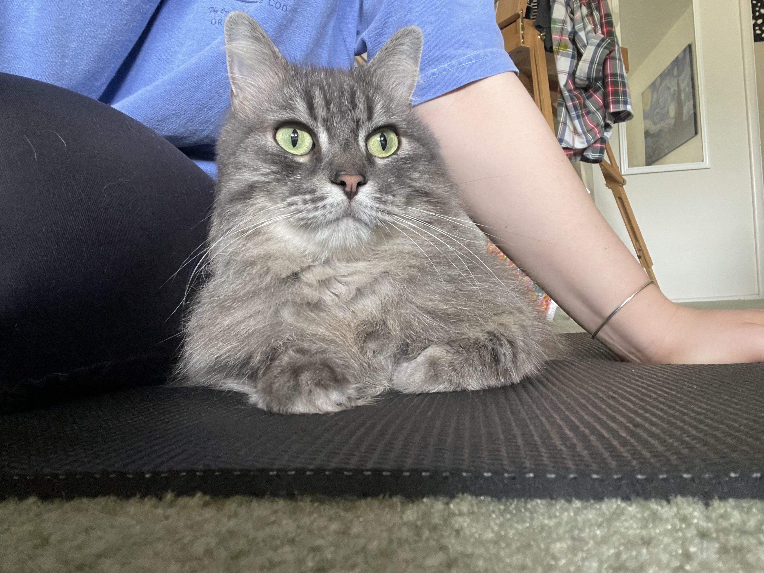 Summer is a playful, affectionate girl. She takes a while to warm up to new people and shake off some grumpiness, but once she feels comfortable, she loves to snuggle, play with toys and scratch pads, and talk! Her favorite hobbies include taking naps with her foster mom, exploring nooks and crannies, and perching in windows to enjoy nature. She will make a sweet and loving addition to the right home; she will insist on sleeping right next to you every night and happily show off her speedy trotting when you’re about to put food in her bowl. Summer is looking for an adopter who has had cats before, and would do best in a quiet home without other pets so she can be the focus of all attention.