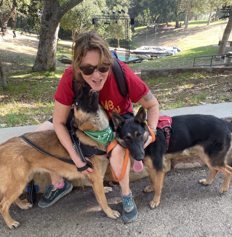 Say hello to mother/daughter duo Sasha (brunette, younger) and Mila (blonde, older). These gorgeous Shepherds are a bonded pair and ton of fun. Two volunteers took them out for a day hike and everyone had a fantastic time!!! Mila likes to lead the pack when do our Happy Tails group hikes, so when other dogs came near, she wanted to follow them so she could take the lead. (Nothing aggressive, she just wants to be in front.) We distracted her with some treats and she quickly became more interested in snacking than leading. Sasha was a true mama’s girl. She stayed close by Mila and was very good with other dogs.