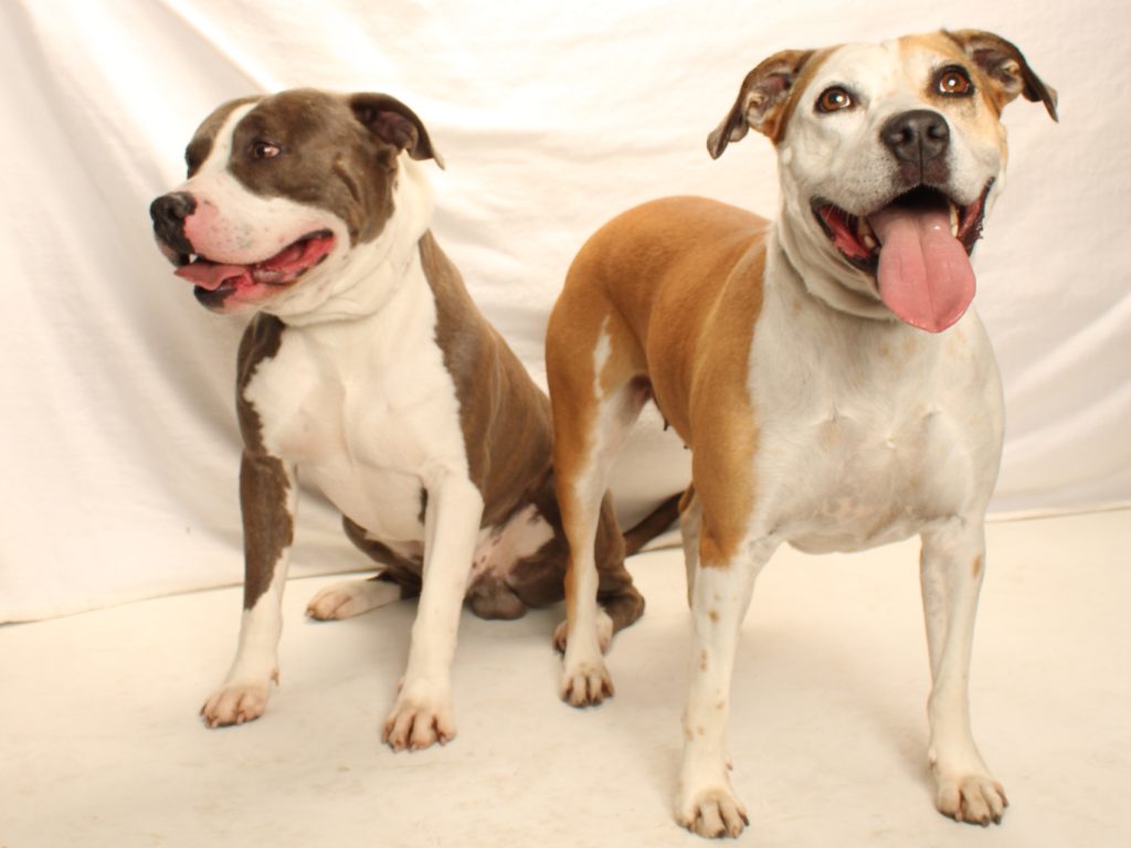 Introducing Milo (grey) and Daisy (tan)- a pair of playful pitties. You simply must get to know these goofballs. Milo is a bit older (3yrs), a bit stockier and a bit slower, but just a bit. Daisy is younger (2yrs), super fast and has springs in her legs. Well, not technically, but she might as well for how good she leaps.