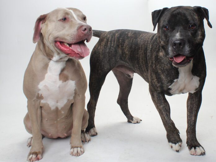 Sammie and Luna were brought to the Burbank Animal Shelter when their previous owner became ill and could no longer care for them. They are a very sweet pair of bonded dogs that need to stay together as they rely heavily on each other. Sammie is a male, black and brown brindle pitbull terrier around four years old and Luna is a female white pitbull around the same age.