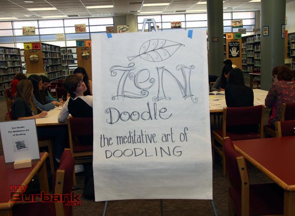 The school’s new Sketchbook Project booklets were available for students and a large table was set up for Zen Doodle, the meditative art of doodling.