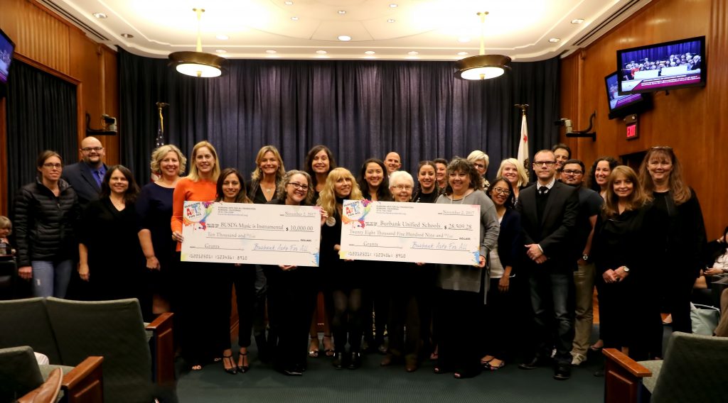 Burbank Arts for All Foundation (the Foundation) announced investments made in media, visual and performing arts programs for schools in Burbank Unified School District (BUSD) at the Board of Education meeting on Thursday November 2, 2017. Trena Pitchford, Executive Director of the Foundation, announced a total of combined grant giving of $38,509.28, the Foundation’s largest gift to date. Included in this total gift is a $10,000 grant to support BUSD’s Music Is Instrumental campaign as well as an investment of $28,509.28 in school site programs.