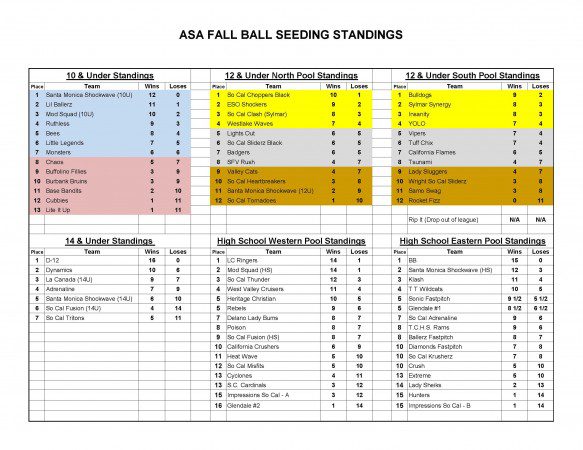| Sylmar Synergy | 10 | vs. | 0 | Wright So Cal Sliderz |