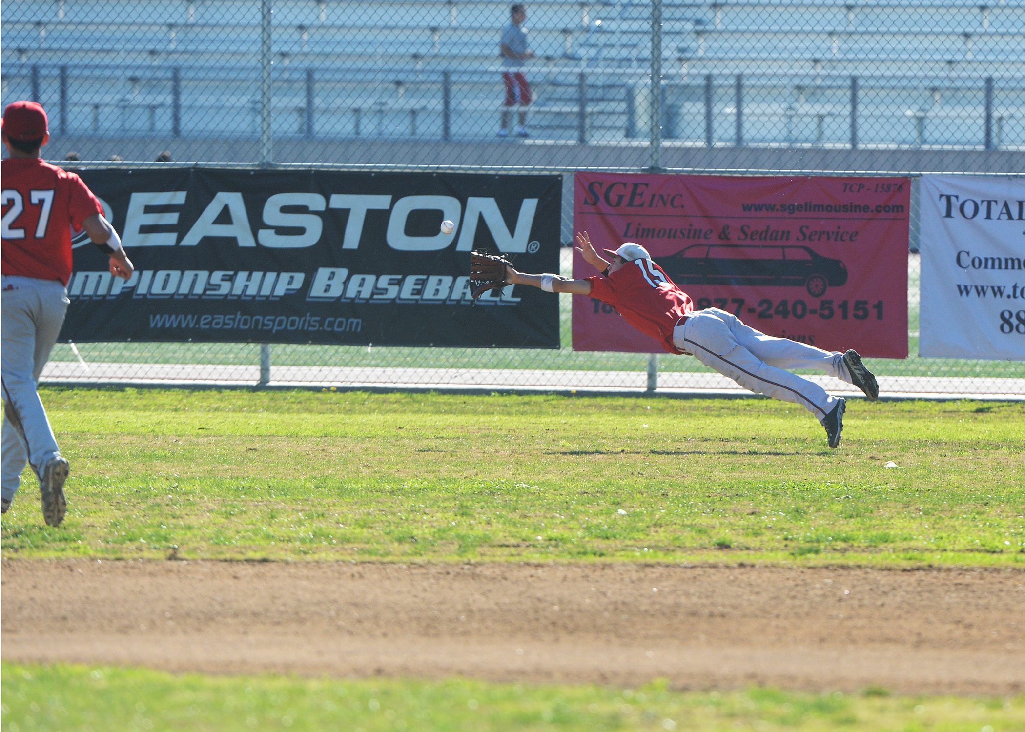 Anthony Bocanegra makes one  of his spectacular catches in right field (Photo by Mitch Haddad)