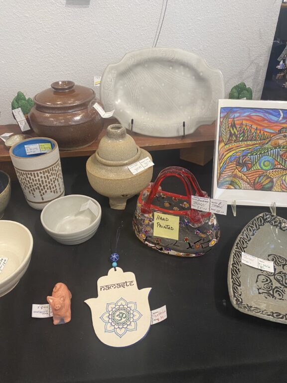 “The week before the boutique opens we transform the gallery and the pottery studio into a warm artsy specialty boutique,” Virginia Causton-Keene said. “The artists drop off their many thousands of items to be distributed throughout the gallery and studio, we have a team of artists come and make the display pleasant on the eye, for a wonderful, relaxing shopping experience.”