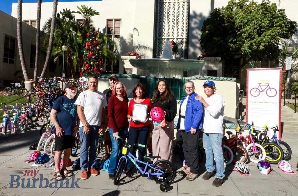 The Burbank Bike Angels celebrated their 17th Holiday season on Wednesday, December 10, 2025, with a festive display of restored bicycles on the front steps of Burbank City Hall, 275 E. Olive Ave.