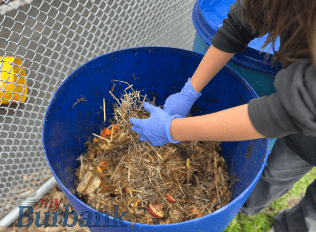 Kreigh Hampel, who recently retired as the City of Burbank’s Recycling Coordinator and worked in the department for 17 years, has helped lead the fourth grade composting classes. He teaches the students about the art and science behind composting including how to balance carbon, nitrogen, moisture and air while getting soil microorganisms to thrive.