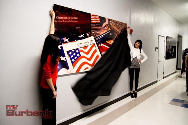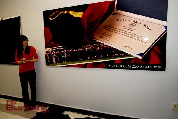 Burbank Adult School showed off 10 new large photos celebrating the diverse programs the school offers at an Open House held on Wednesday, January 29. BUSD staff and administrators, students and community partners gathered to toast the unveiling of the artwork, which was made possible by generous donations from local businesses, Coloredge and Outwater Productions.
