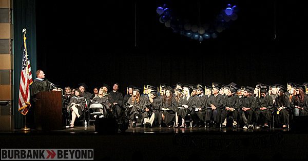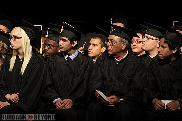 The Burbank Adult School class of 2012 with 98 high school diplomas recipients and 63 general education diplomas handed out, listen to keynote speaker Stan Carrizosa, reflect his early years of his life that were challenging, and reminding them to also look forward. (Photo by Ross A. Benson)