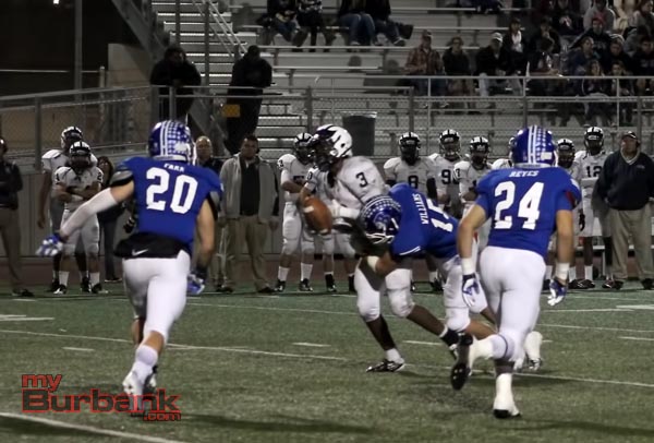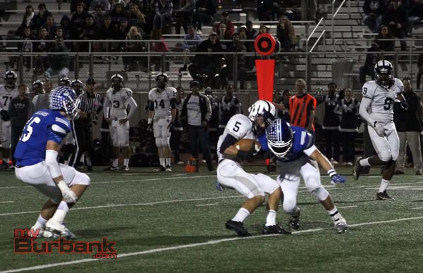 Once again Burbank began a drive at its one-yard line and 14 plays later senior running back Joseph Pendleton (61 yards on 13 rushes) scored on a two-yard burst as 31.2 seconds was left in the first quarter for a 14-0 lead.