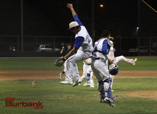 Joey Bogenschutz garnered the win for Burbank throwing 4.2 innings and giving up three runs. Shaun Troy did an excellent job in relief striking out three and allowing no hits in two innings of work. Ricky Perez earned his fifth save of the season throwing two pitches, getting two outs and shutting the door on Cajon (13-14).
