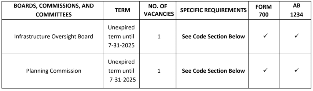 The Burbank City Clerk’s Office is accepting applications for the Infrastructure Oversight Board and the Planning Commission beginning November 27, 2024 through December 27, 2024. Applications may be submitted online by visiting www.burbankca.gov/bccapplication or you can pick up an application in the City Clerk’s Office located in City Hall at 275 East Olive Avenue, First Floor. Completed applications may be submitted online, mailed, or dropped off (no postmarks and no exceptions for late submittals).