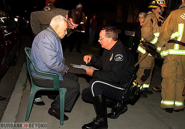 Burbank Police arrived on scene first and discovered that the driver was walking away not suffering from an apparent heart attack. Burbank Firefighters arrived and discovered a gas line had had been severed, along with a waterline leading to a water heater that supplied the multi-unit apartment complex. Paramedics quickly checked the 80 year-old driver, Aratek Murkelan and determined he was alright.