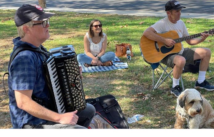 “Many San Fernando Valley jams disappeared during the pandemic,” said Kim Nakae, a banjo player and psychotherapist from Sherman Oaks. “It’s great to see more popping up.” Nakae enjoys seeing passersby stop to listen. “Concerts are so expensive these days,” he added. “People love that we’re offering this for free every Sunday.”