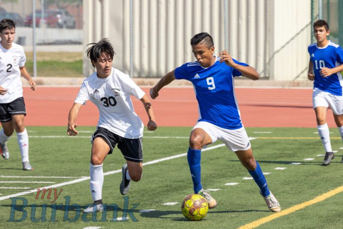 The run wasn’t finished though, as Burbank’s Nicholas Diaz gained possession and fired a shot that hit the goal post, but would not go in.