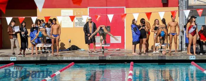 Burroughs boys (5-2 in league) won 10 of the 11 events to top Burbank. The Bears got two individual wins from Lee in the 50 freestyle (23.32) and 100 free (51.30). They also got individual first-place efforts from Atticus Mata in the 200 free (2:12.11), Aidan Means in the 100 butterfly (1:05.13), Ronan Sieverston in the 200 individual medleys (2:30.61), and Alec Lazarev in the 100 backstroke (1:05.97).