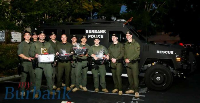 Burbank Housing Corp along with Burbank Police Officers Association, Handy Mart, Costco, and others teamed up and provided a Drive Through Christmas Gift Give Away to tenants of Burbank Housing Corporation. Burbank Swat Officers along with several Dectitives, Cadets, and Explorers filled car trunks with food baskets and several books and goodies at Burbank Housing Corporation’s Grismer properties.