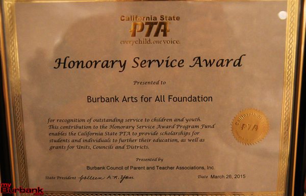 The Burbank Council PTA held its 65th annual Honorary Service Awards banquet Wednesday evening, April 15, at The Castaway. Teachers, parents, principals and staff from the Burbank Unified School District were recognized for their service. The PTA Council award was presented to Steve Frintner, PTA Council President, and Burbank Arts For All Foundation (BAFA.)