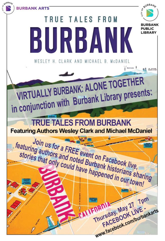 The Burbank Cultural Arts Commission and the Burbank Public Library host True Tales From Burbank with Burbank historians Wesley Clark and Michael McDaniel for the final Virtually Burbank online event on Thursday, May 27.