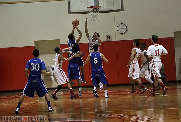 With the crowd on its feet and the clock winding down, the annual renewal of the Burroughs – Burbank boys’ basketball rivalry came down to one shot. Lawrence White’s 16-foot jumper from the right wing with four seconds left fell short allowing Burbank to prevail, 55-52, in a Pacific League showdown Friday night at JBHS.