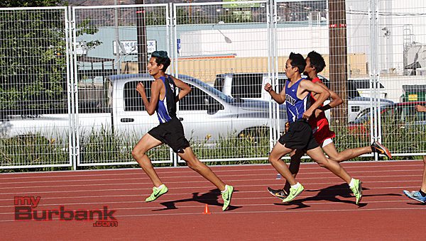 Bulldog junior Arsen Mkrtchyan won a highly contested 800 in 1:58.13 over Burroughs’ Ricky Mendez (1:58.62). Burbank’s Bernie Corea won the 3,200 in 9:46 ahead of Burroughs sophomore Elias Hoxie, who was second in 9:53.