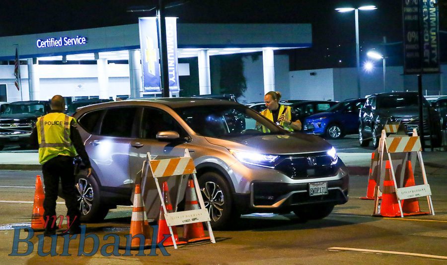 Burbank Police conducted a DUI Checkpoint on Saturday, August 28. During the Checkpoint held on Olive between Lake and Victory, they screened a total of 337 vehicles which is a much lower total than pre-COVID-19 checkpoints.