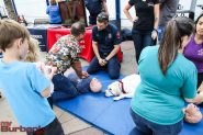 Hundreds took advantage of the pop-up display at the corner of Palm and San Fernando Boulevard. Nurses and firefighters taught all ages, from young kids to seniors, to do hand only CPR.