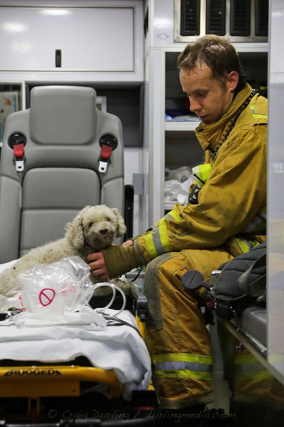 Swift action by responding units led to a quick knock down on the fire. Although the residents were not home at the time of the fire, their poodle Coco was treated by BFD personnel and reunited with her owners.