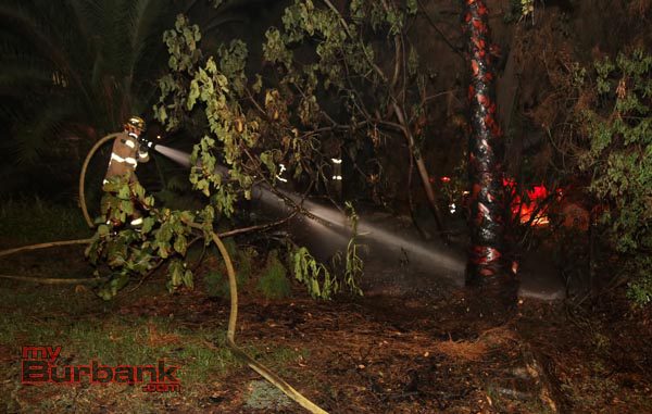 The Burbank Fire Department responded to a reported vegetation fire at Palm and Sunset Canyon late Sunday night. While the firefighters were extinguishing that small blaze, Burbank Police reported another vegetation brush fire a couple of blocks away at the intersection of Sunset Canyon & Harvard Road.