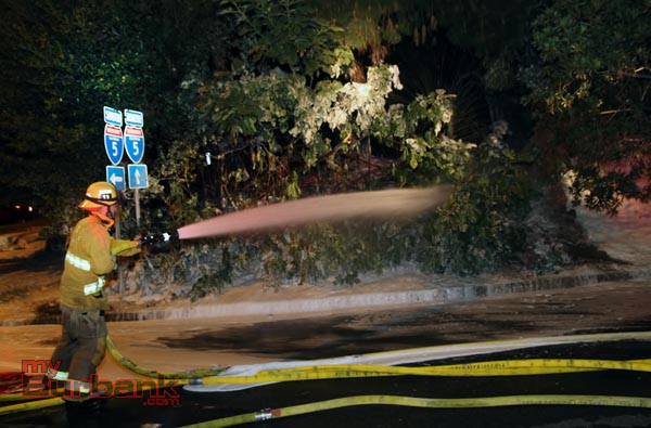 Firefighters using hand-lines from two engine companies got the upper hand and cancelled the additional brush assignment. Burbank Police were required to close traffic in the area while firefighters extinguished and overhauled the area.