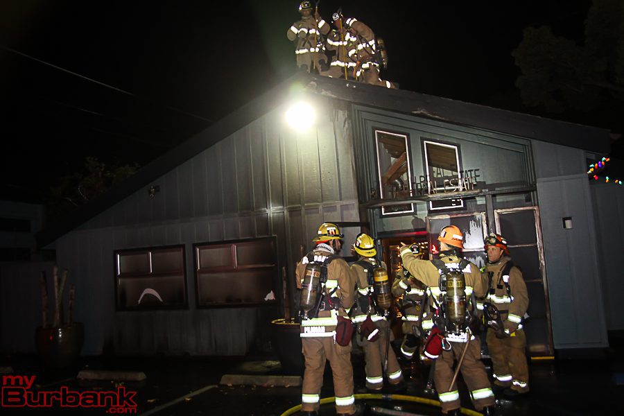Burbank Fire Fighters responded to a reported fire to the rear of 4417 West Magnolia Blvd early last night. Upon there arrival they found a fire to the exterior of  Bill Toth & Associates Real Estate Offices.BFD Bldg Fire 4417 W Magnolia