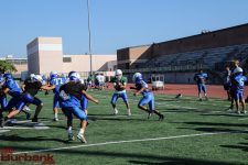 Burbank’s players sport the word Family on the backs of their helmets. They nearly earned a shutout until Monrovia scored late in the fourth quarter.