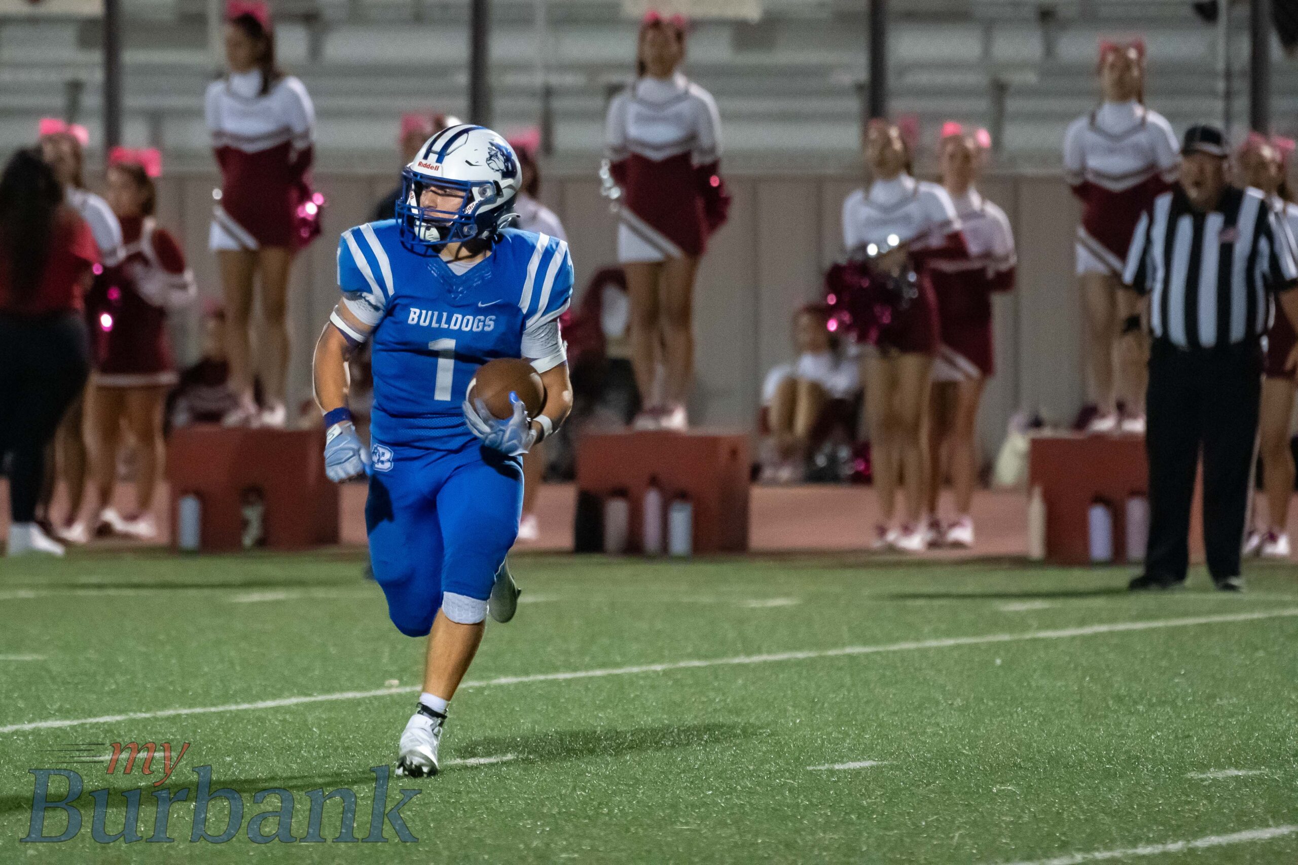 Burbank senior quarterback Dylan Robinson (five of eight for 86 yards and seven carries for minus 27 yards) tried his best to move the ball down the field but was harassed countless times in the backfield and turned the ball over once on a fumble that led to a six-yard touchdown run by senior wide receiver Derek Ganter Jr. (15 yards on three carries) with 2:21 left in the second quarter that made it 28-0.