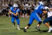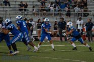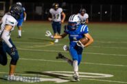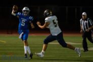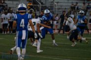 Sophomore Daniel Zacariaz took over at quarterback and for his varsity game ever, he showed improved confidence as the game went along. He completed 16 of 24 passes for 216 yards with one touchdown and two interceptions.