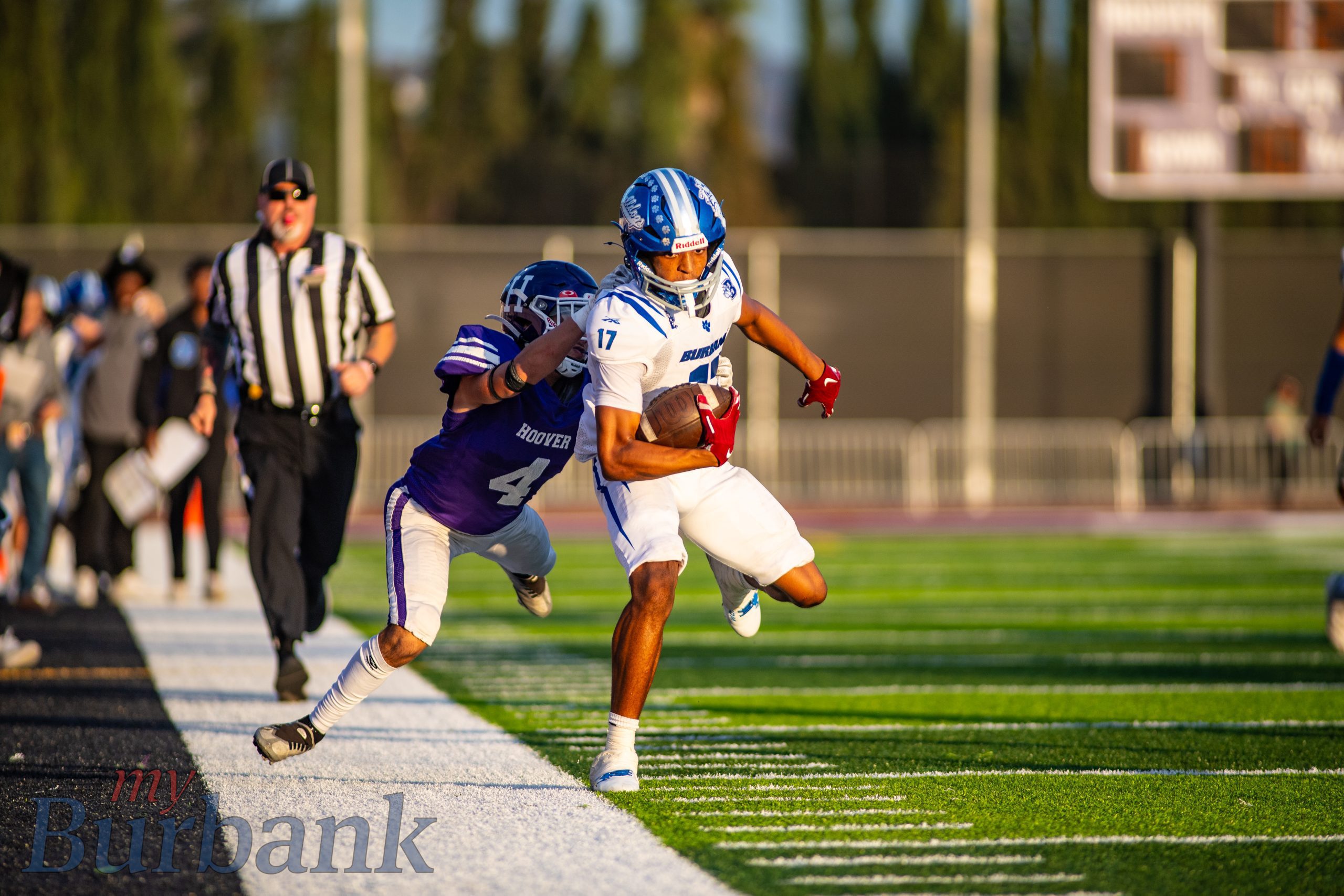 Hoover, which committed five turnovers that included three interceptions, had the ball to begin the second half but fumbled deep in its own territory and it took one play for Burbank to forge a 34-7 lead with 11:43 left as Laporte hit Zacariaz with a 25-yard toss.