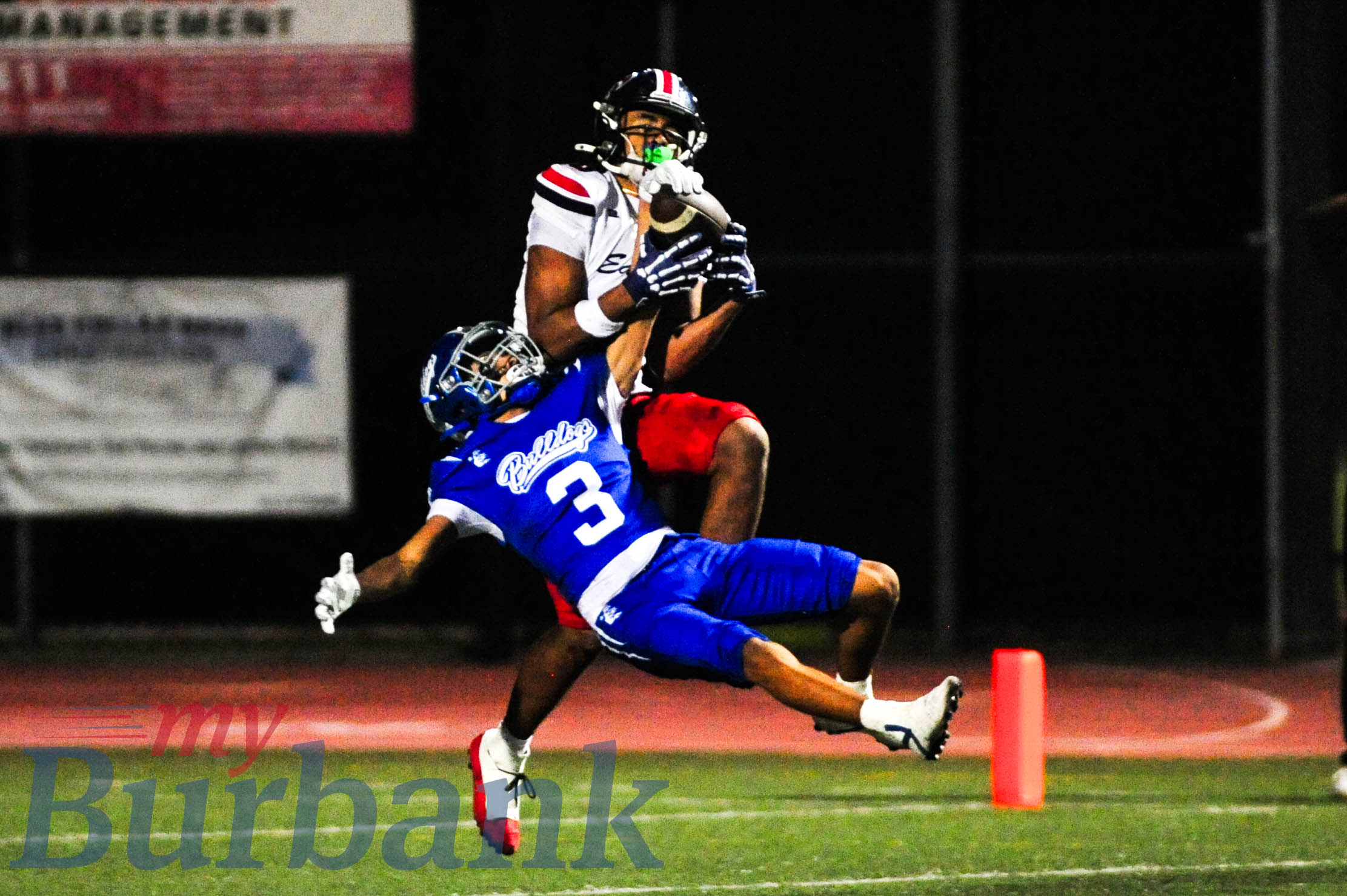 Burbank wide receiver Elijah Pendleton, who had an interception, caught eight passes for 151 yards and also added a 46-yard scoring gallop at 9:00 before halftime as Burbank led 21-14.