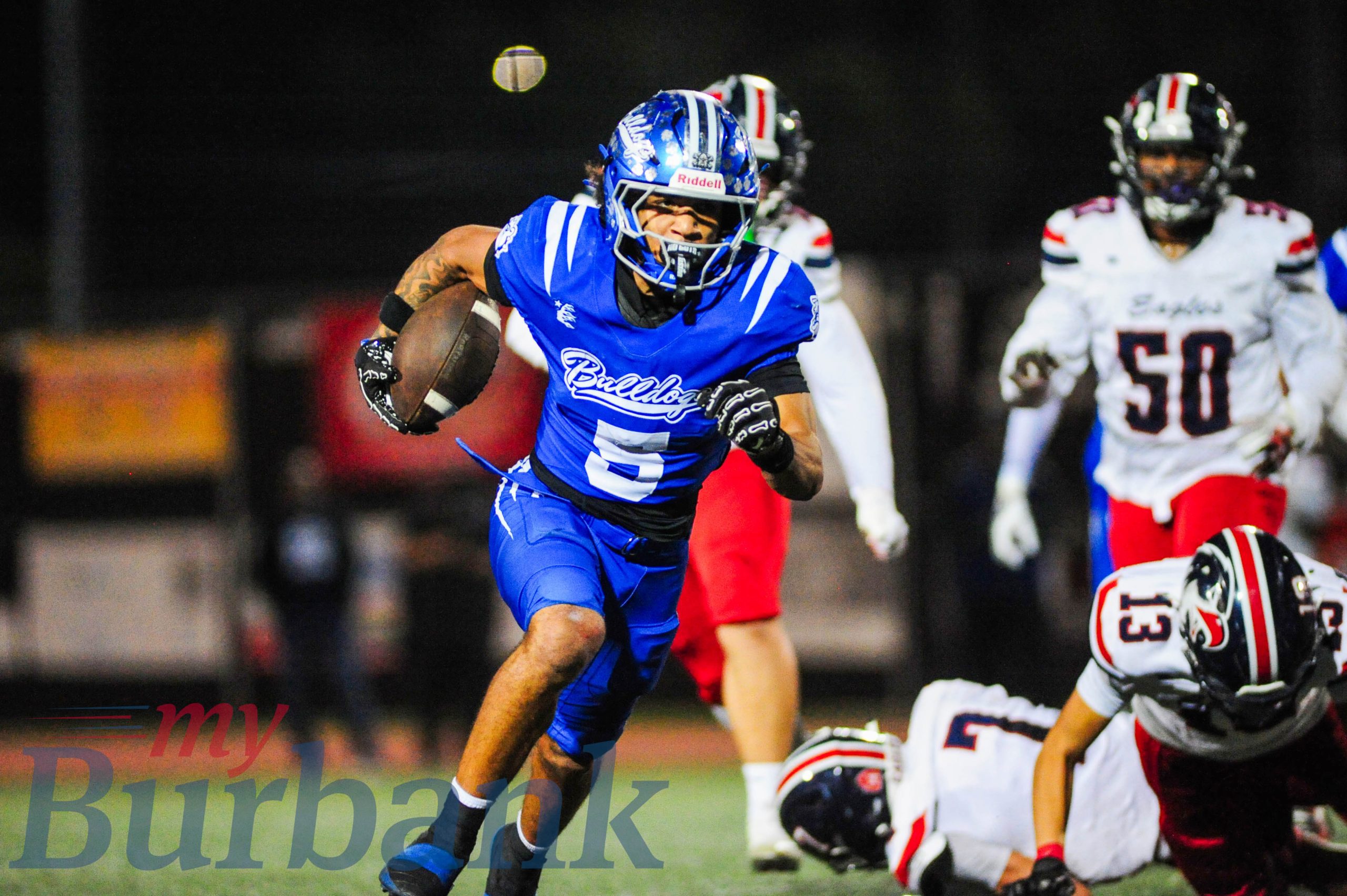 Burbank wide receiver Elijah Pendleton, who had an interception, caught eight passes for 151 yards and also added a 46-yard scoring gallop at 9:00 before halftime as Burbank led 21-14.