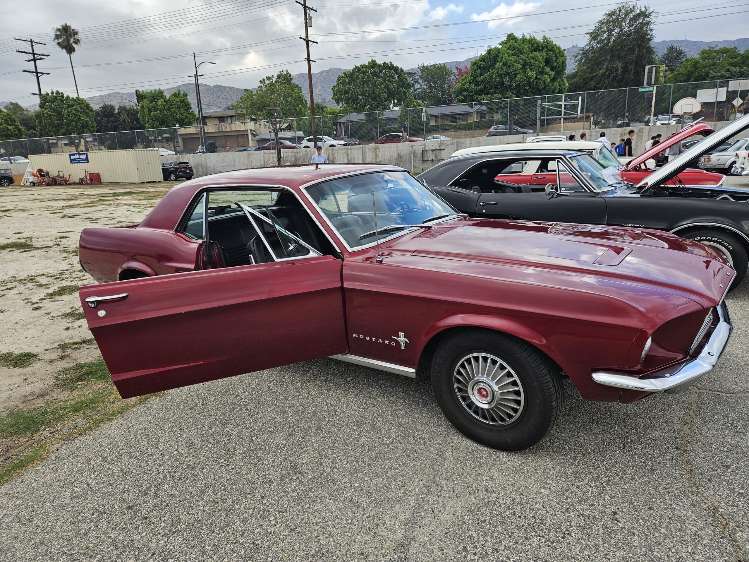 A classic car show was on display in the parking lot adjacent to the track and field.