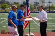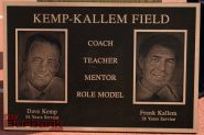 “These two men have enriched so many Burbank lives over the years and left their paw prints all over this campus. It’s their legacy that helped build this place to be what it is today,” Bertram said. “It’s only fitting that this facility where I stand is named for them. I’ve had the fortune to work directly with Dave Kemp when he was a School Board member and his leadership and dedication to not only BUSD but more importantly to Burbank High School will always remain with me. I have a tremendous amount of respect for Frank and the relationships he developed and all the kids’ hearts that he’s touched over the years. Even though the facility looks nothing like it did years ago, calling it the Kemp-Kallem Field will forever keep the rich history and memories built on this campus.”