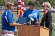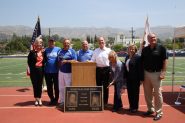 “First of all, I’d like to thank all of you for coming. As I look up in the stands I see so many people, we go back with the memories that are just unbelievable. You remember all the things we did together and I remember those things too,” Kallem said. ” I have so many dear friends that I know are in the stands today. We set a lot of records, but the most important thing wasn’t the records, it was the camaraderie that we had with each other. I don’t think there’s a school in the United States that had as much of a close-knit group as we were at Burbank High School. It was an amazing experience for Dave and myself.”