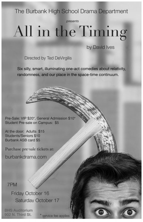 The Burbank High School Drama Department presents All in the Timing, a collection of six one-act plays, on Friday, October 16, and Saturday, October 17. Written by David Ives, All in the Timing, is directed by the school’s new Theater teacher, Ted DeVirgilis.